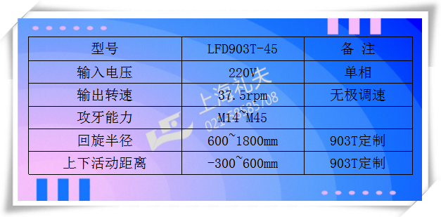 3、 LFD903T-45型 電動攻絲機 上下活動行程:-300mm-600mm。